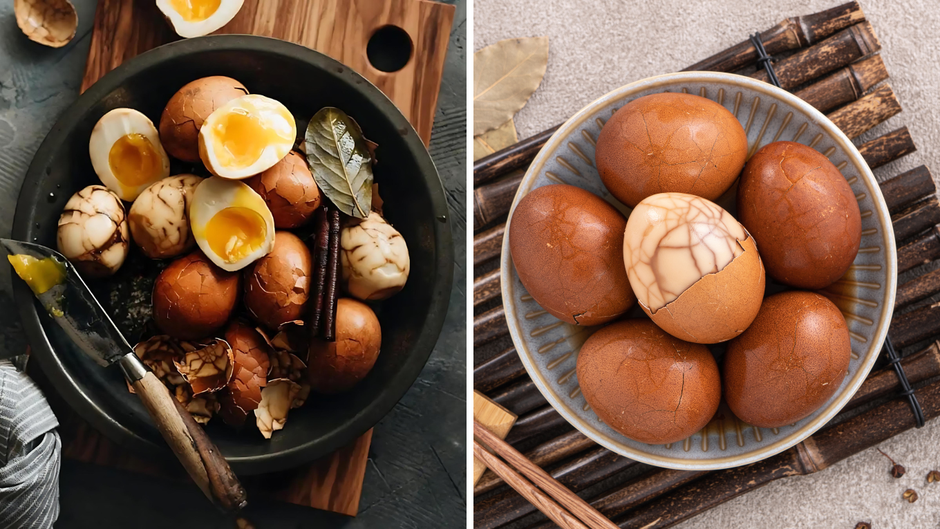 Nghe đến tên trứng chưng trà, bạn đừng nhầm tưởng với trứng luộc nhé bởi món ẩm thực của Bắc Kinh luôn mang một hương vị đặc trưng riêng. Với món này, trứng được pha trộn với quế, đường phèn và các loại thảo mộc, khiến trứng trở nên thơm ngon và giàu dinh dưỡng hơn. Khi ăn sẽ có mùi thơm đặc trưng, vị bùi và thơm.
