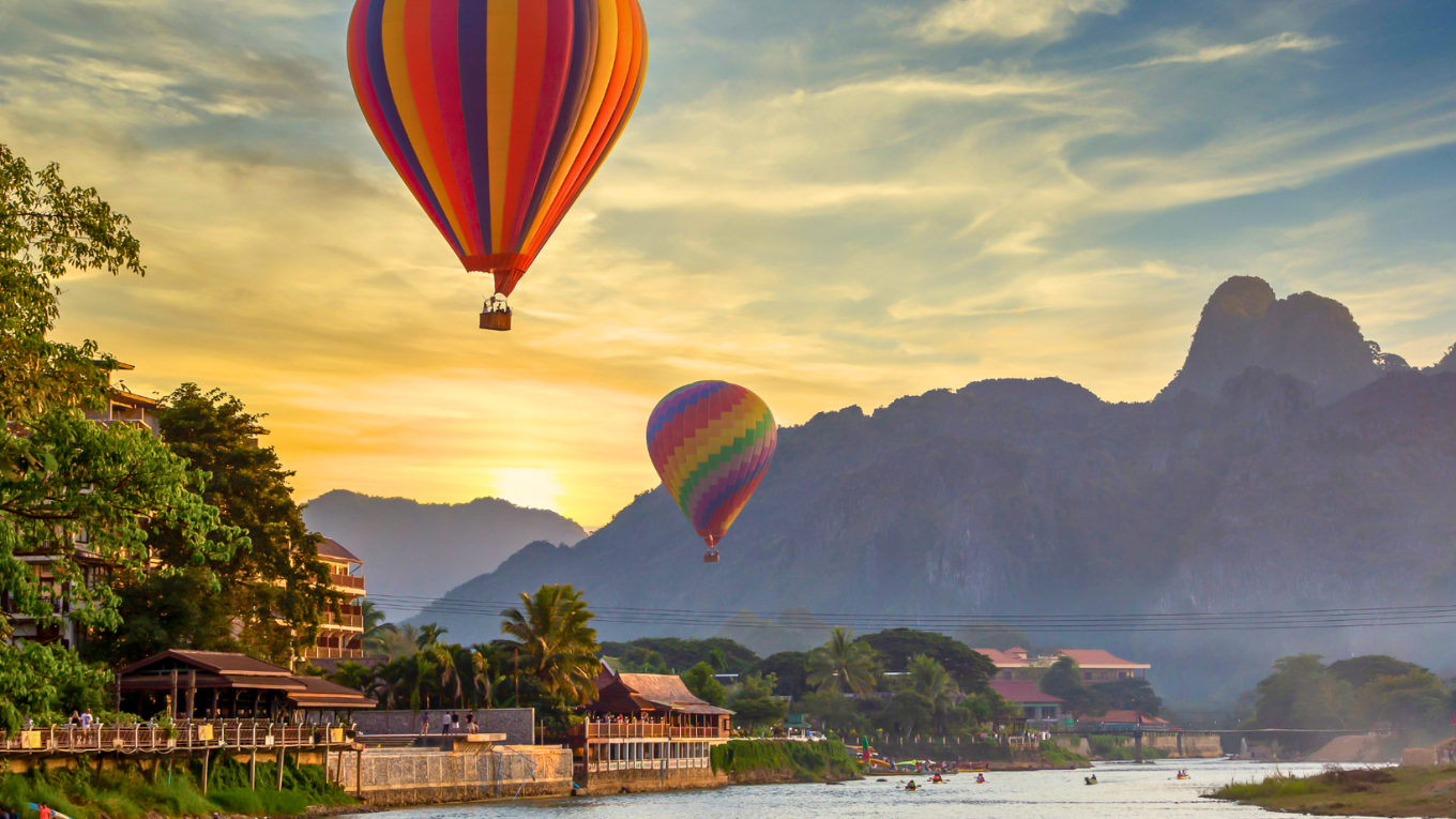 Có thể bạn đã từng nghe về Cappadocia (Thổ Nhĩ Kỳ), nơi khinh khí cầu bay rực rỡ trên thung lũng đá vào bình minh, tạo nên một khung cảnh siêu thực như trong cổ tích. Thế nhưng bạn biết không? Ngay tại Văng Viêng ở đất nước Lào, cũng có trải nghiệm khinh khí cầu không kém phần kỳ ảo giữa núi đá vôi trùng điệp và sông Nam Song giúp bạn ngắm trọn vẹn vẻ đẹp thiên nhiên của đất nước tươi đẹp và bình yên này!