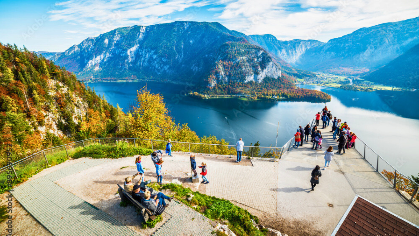 Nếu muốn ngắm trọn vẻ đẹp mùa thu Hallstatt từ trên cao, Skywalk chính là nơi bạn không thể bỏ qua. Nằm lơ lửng trên vách núi Salzkammergut ở độ cao hơn 300m, đài quan sát này cho phép bạn thu trọn vào tầm mắt ngôi làng cổ, mặt hồ, và toàn cảnh những ngọn núi nhuộm lá vàng. Đây cũng là điểm check-in “triệu view” được du khách khắp thế giới yêu thích.