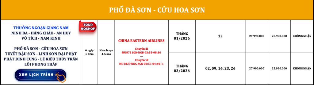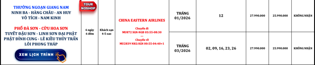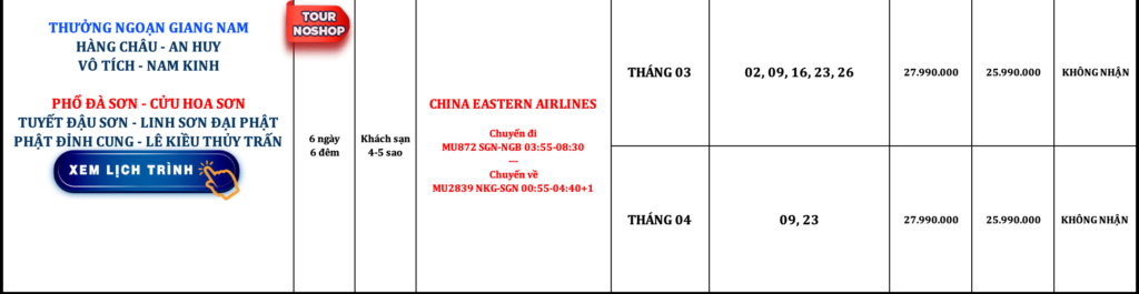 TRUNG QUỐC | THƯỞNG NGOẠN GIANG NAM | 6N6Đ | NOSHOP