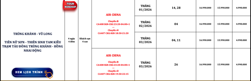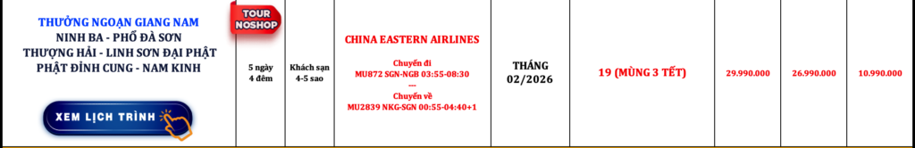 TRUNG QUỐC | THƯỞNG NGOẠN GIANG NAM | 5N4Đ | NOSHOP