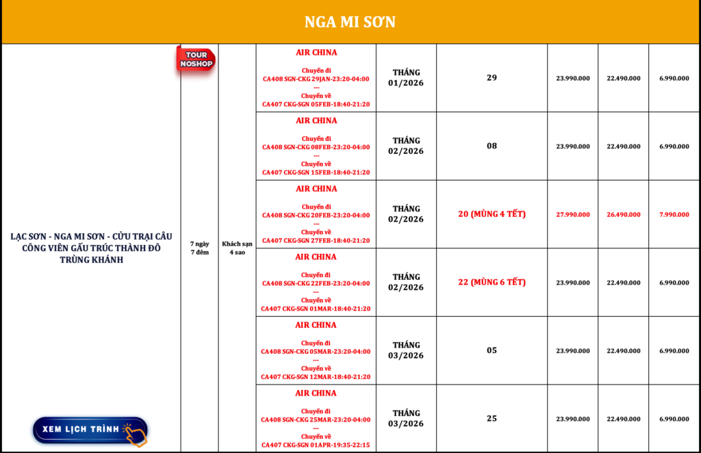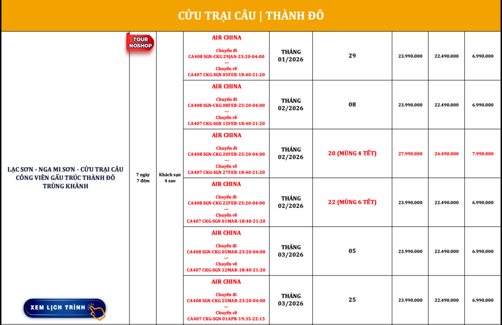 TRUNG QUỐC | LẠC SƠN – NGA MI SƠN – CỬU TRẠI CÂU CÔNG VIÊN GẤU TRÚC THÀNH ĐÔ TRÙNG KHÁNH | 7N7Đ | NOSHOP