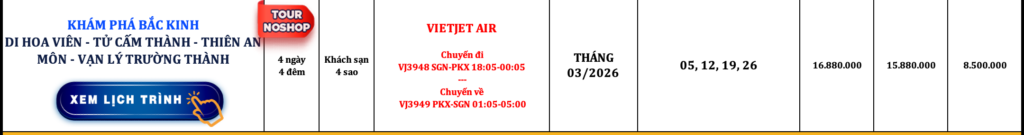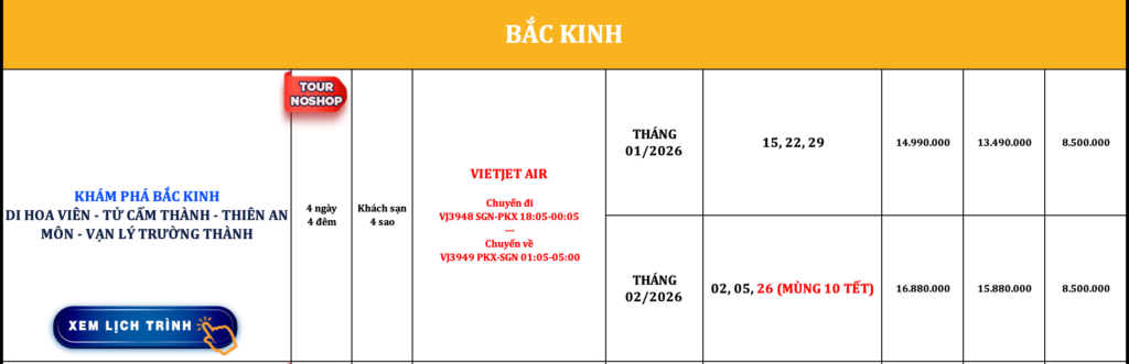 TRUNG QUỐC | KHÁM PHÁ BẮC KINH | DI HOA VIÊN – TỬ CẤM THÀNH – THIÊN AN MÔN – VẠN LÝ TRƯỜNG THÀNH | 4N4Đ | NOSHOP