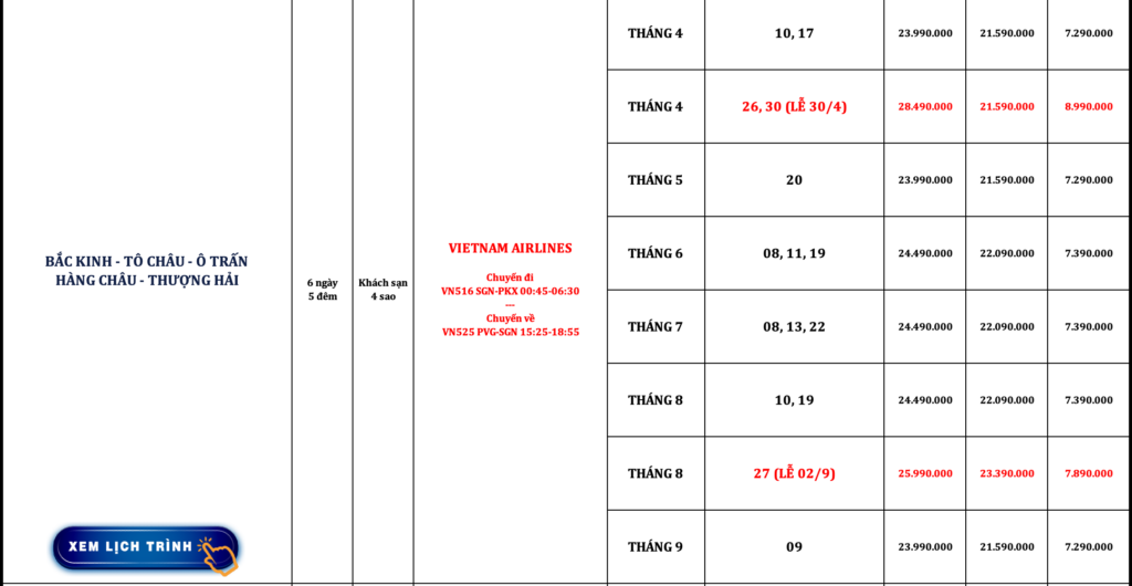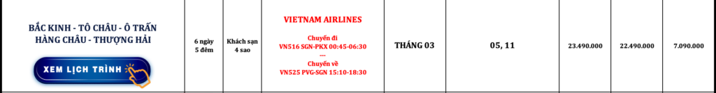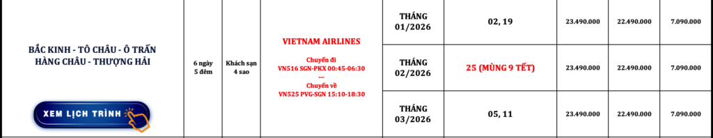 TRUNG QUỐC | BẮC KINH – TÔ CHÂU – Ô TRẤN – HÀNG CHÂU – THƯỢNG HẢI | 6N5Đ | VIETNAM AIRLINES