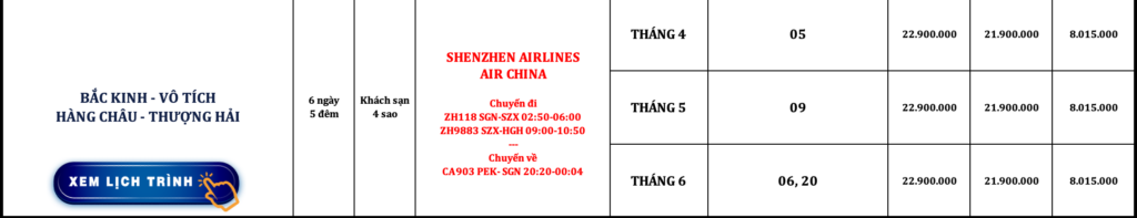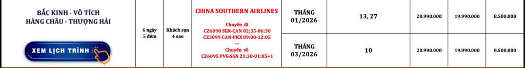 TRUNG QUỐC | BẮC KINH – VÔ TÍCH – HÀNG CHÂU – THƯỢNG HẢI | 6N5Đ