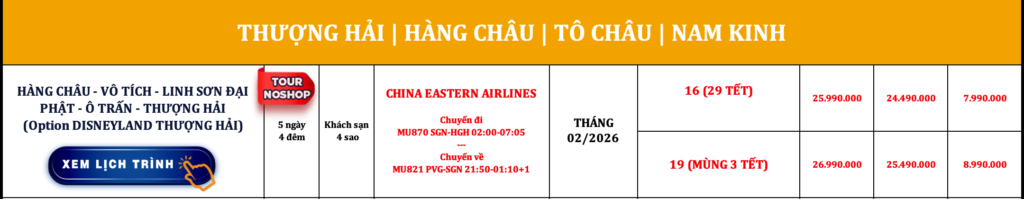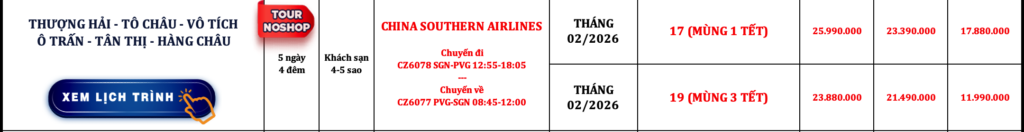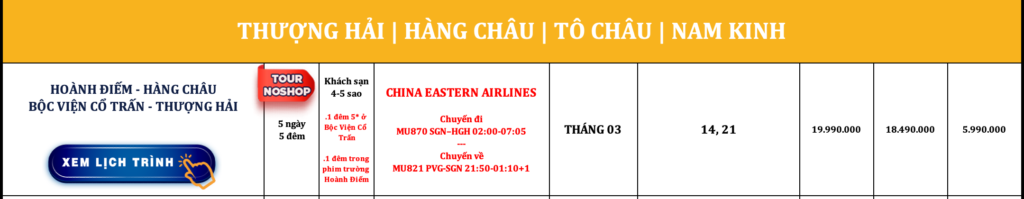 TRUNG QUỐC | THƯỢNG HẢI – TÔ CHÂU – VÔ TÍCH – Ô TRẤN – TÂN THỊ – HÀNG CHÂU | 5N4Đ | NOSHOP