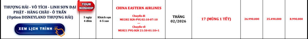 TRUNG QUỐC | THƯỢNG HẢI – VÔ TÍCH – LINH SƠN ĐẠI PHẬT – HÀNG CHÂU – Ô TRẤN (Option DISNEYLAND THƯỢNG HẢI) | 5N4Đ | NOSHOP