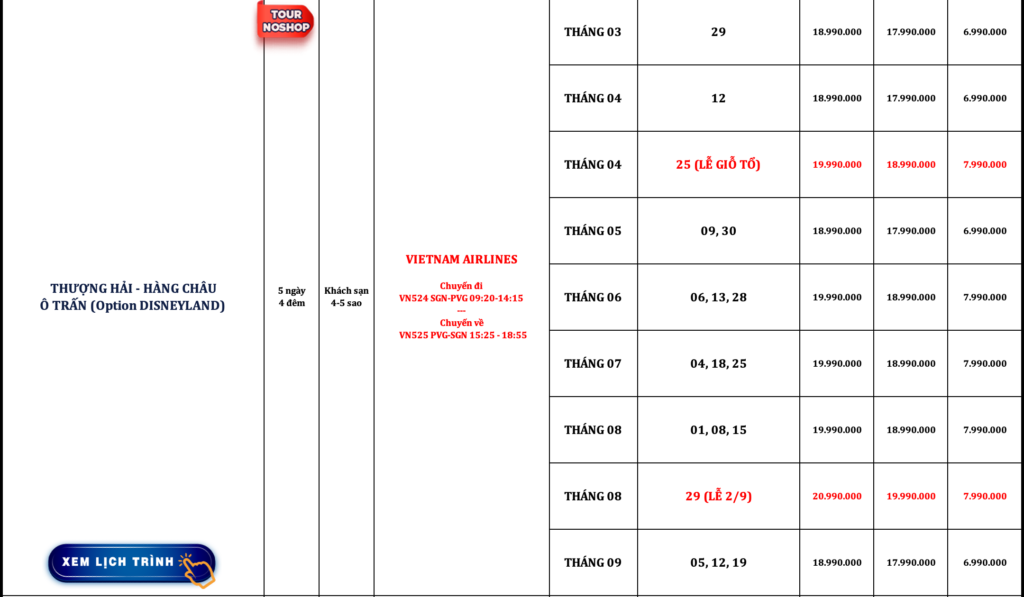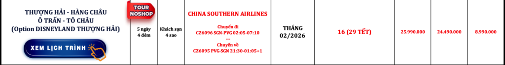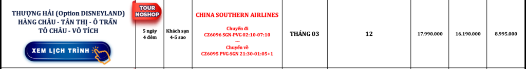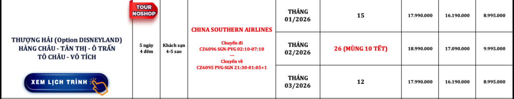 TRUNG QUỐC | THƯỢNG HẢI (Option DISNEYLAND) – HÀNG CHÂU – TÂN THỊ – Ô TRẤN – TÔ CHÂU – VÔ TÍCH | 5N4Đ | NOSHOP