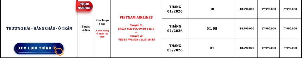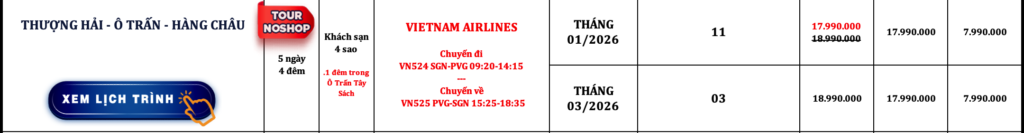 TRUNG QUỐC | THƯỢNG HẢI – HÀNG CHÂU – Ô TRẤN | 5N4Đ | NOSHOP