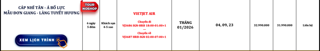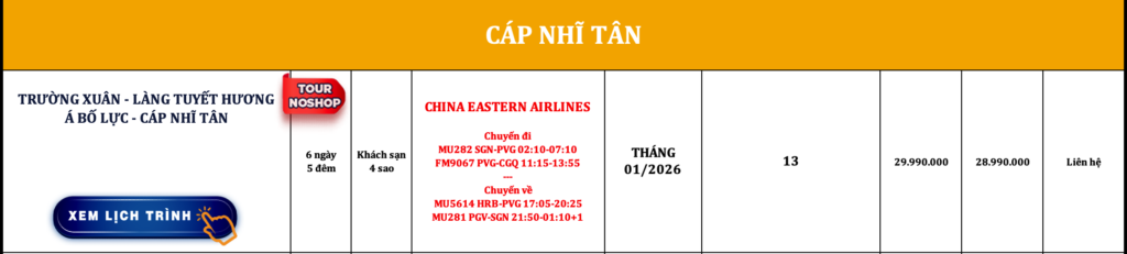 TRUNG QUỐC | TRƯỜNG XUÂN – LÀNG TUYẾT HƯƠNG – Á BỐ LỰC – CÁP NHĨ TÂN | 6N5Đ | NOSHOP
