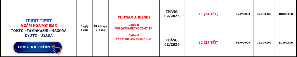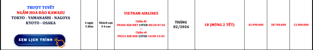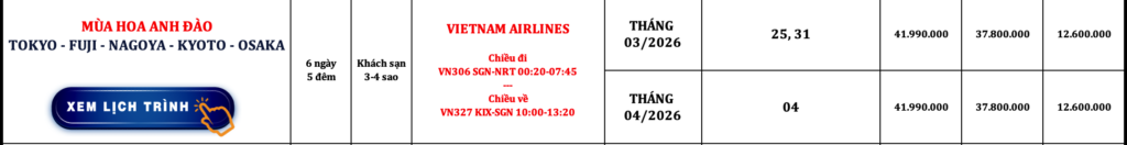 NHẬT BẢN | TOKYO – YAMANASHI – NAGOYA – KYOTO – OSAKA | VIETNAM AIRLINES