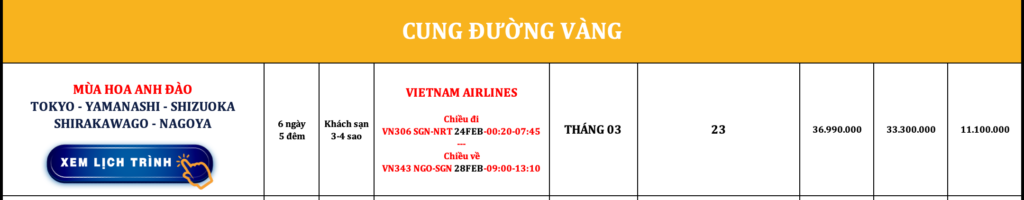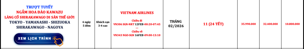 NHẬT BẢN | TOKYO – YAMANASHI – SHIZUOKA – SHIRAKAWAGO – NAGOYA | 6N5Đ | VIETNAM AIRLINES