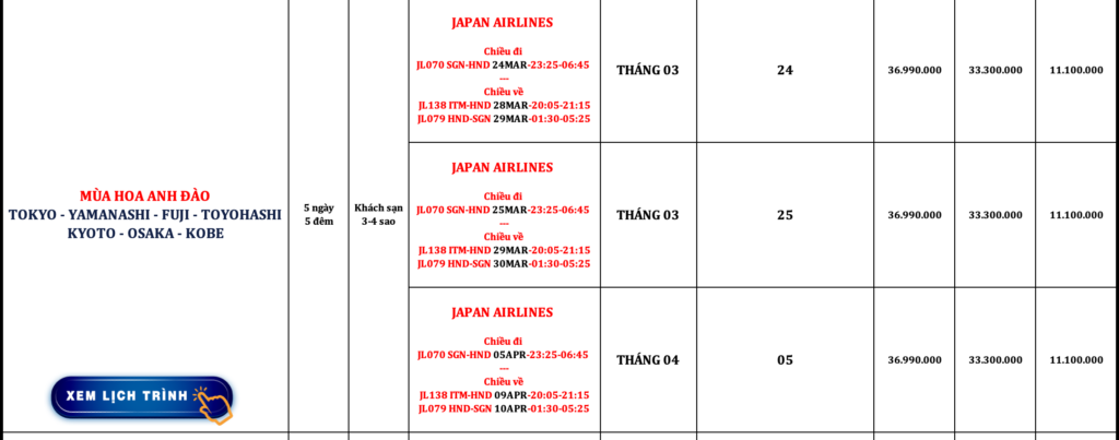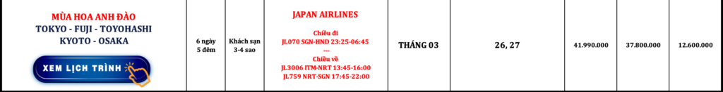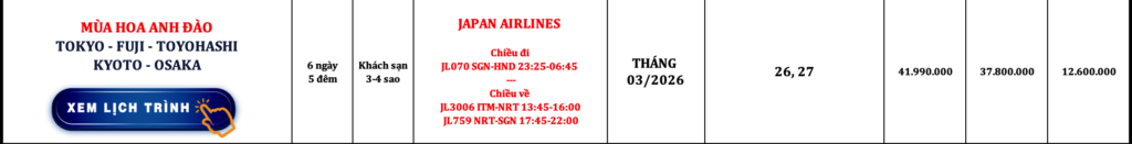 NHẬT BẢN | TOKYO – FUJI – TOYOHASHI – KYOTO – OSAKA | 6N5Đ | JAPAN AIRLINES