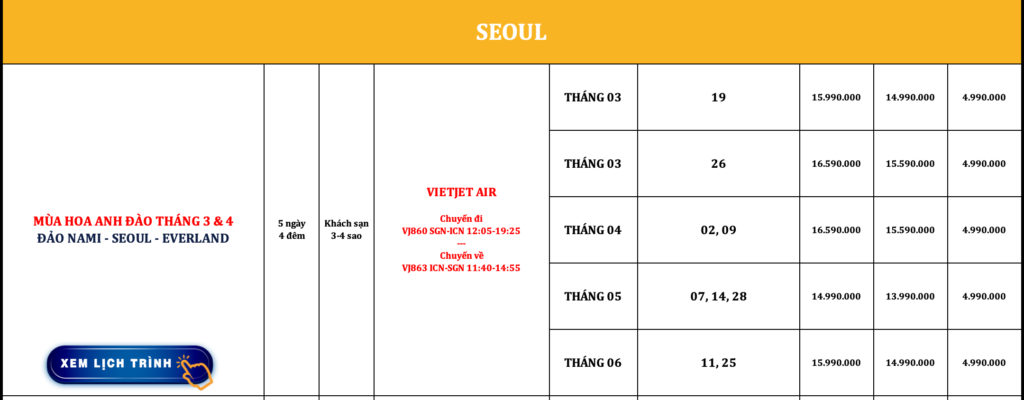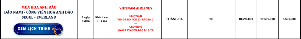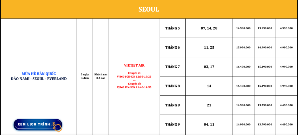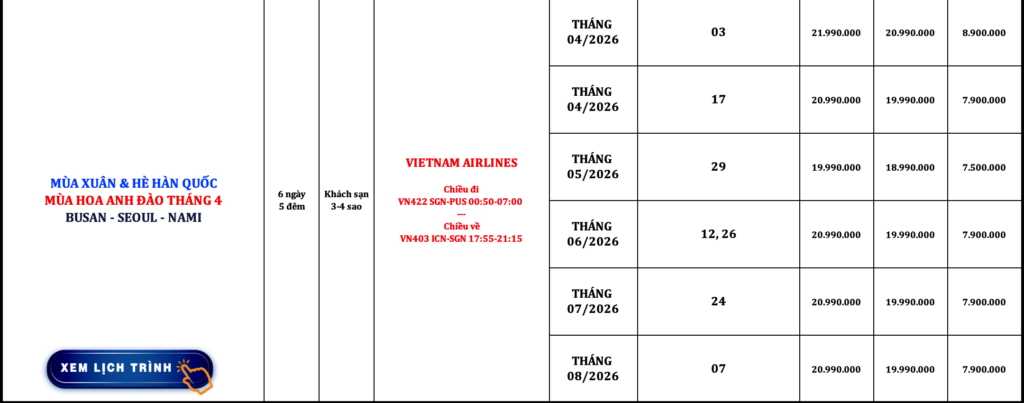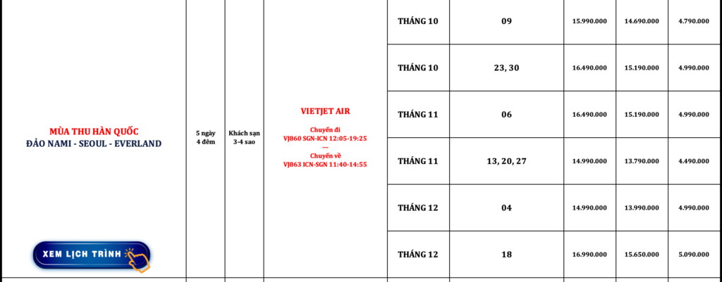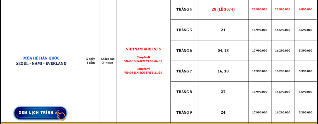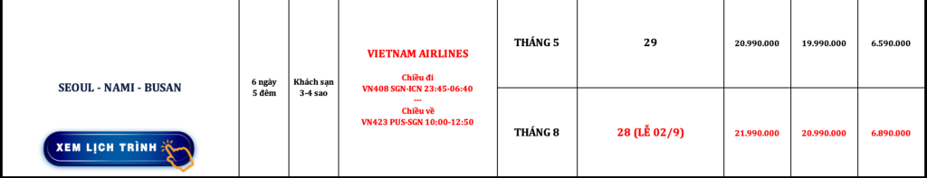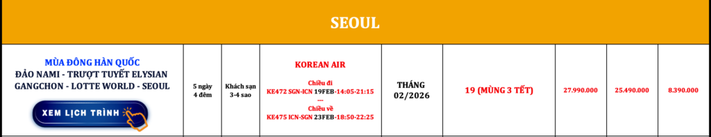 HÀN QUỐC | SEOUL – NAMI – EVERLAND | 5N4Đ | VIETNAM AIRLINES