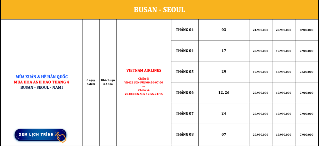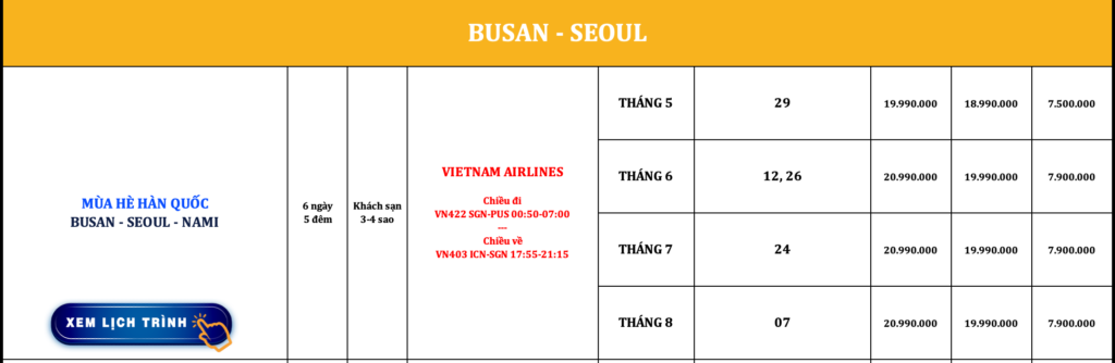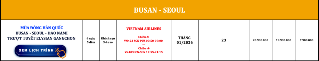 HÀN QUỐC | BUSAN – SEOUL – NAMI | 6N5Đ | VIETNAM AIRLINES