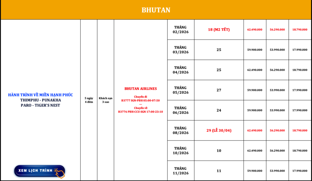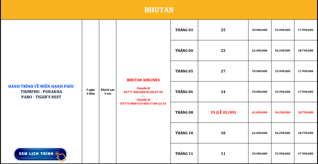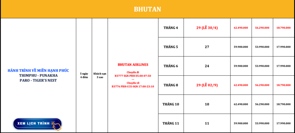 BHUTAN | THIMPHU – PUNAKHA PARO – TIGER’S NEST | 5N4Đ