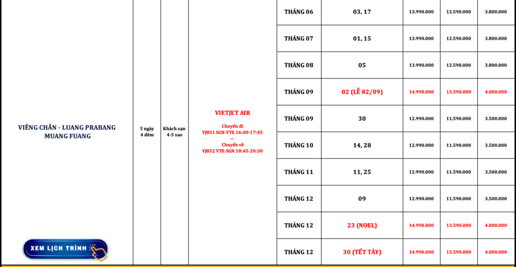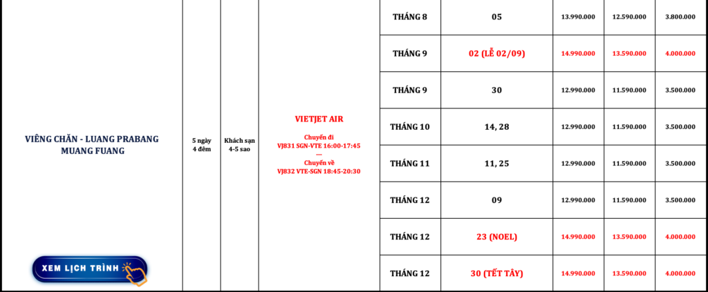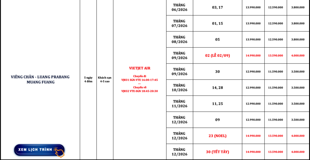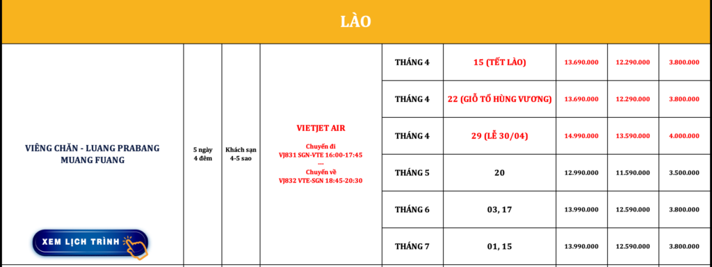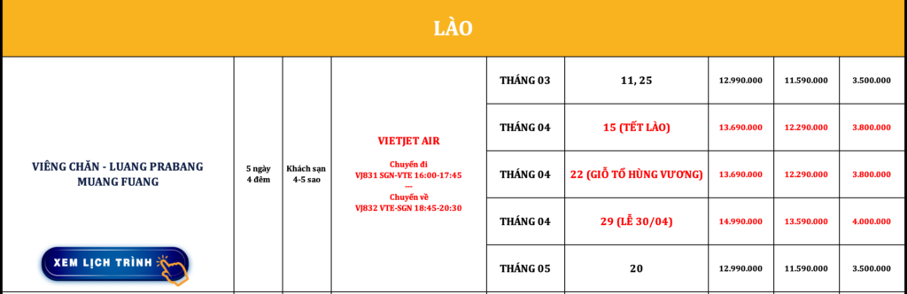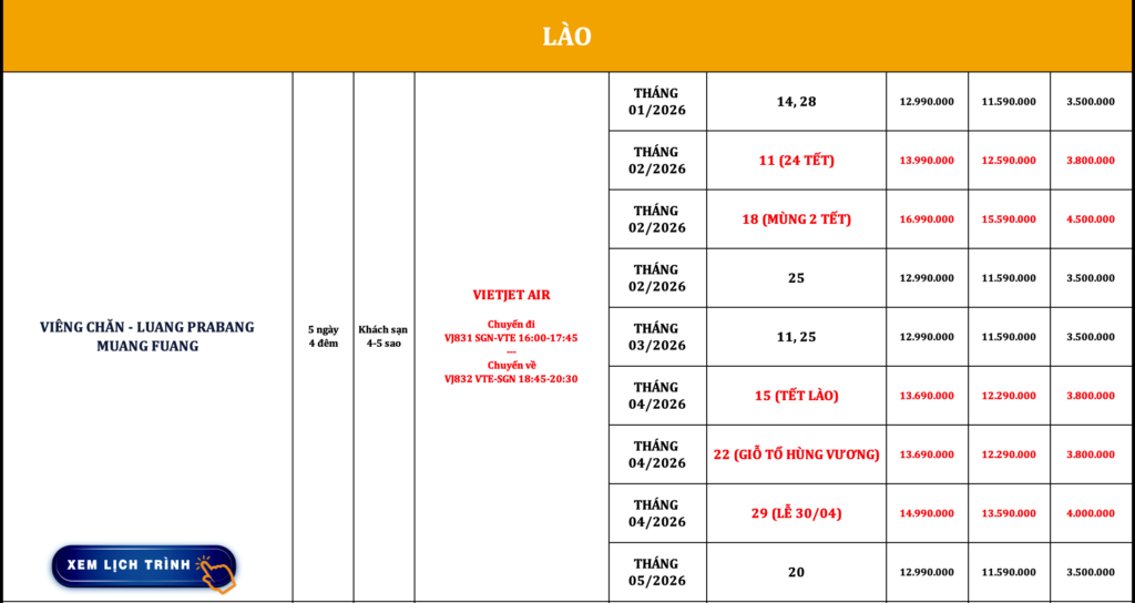 LÀO | VIÊNG CHĂN – LUANG PRABANG – MUANG FUANG | 5N4Đ