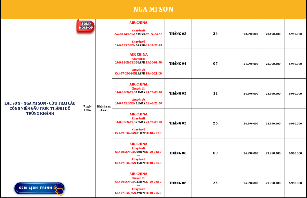 TRUNG QUỐC | LẠC SƠN – NGA MI SƠN – CỬU TRẠI CÂU – CÔNG VIÊN GẤU TRÚC – THÀNH ĐÔ – TRÙNG KHÁNH | 7N7Đ | NOSHOP