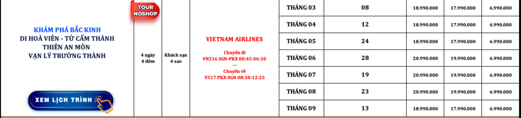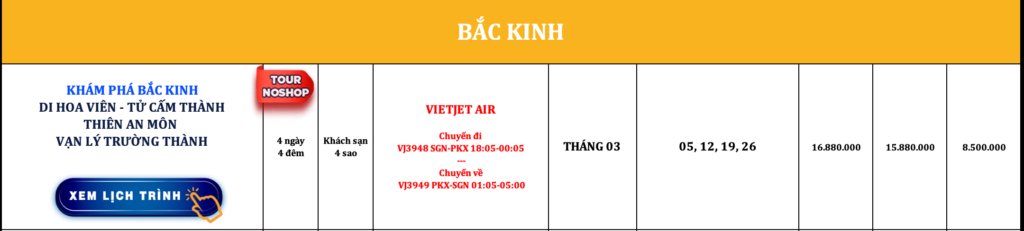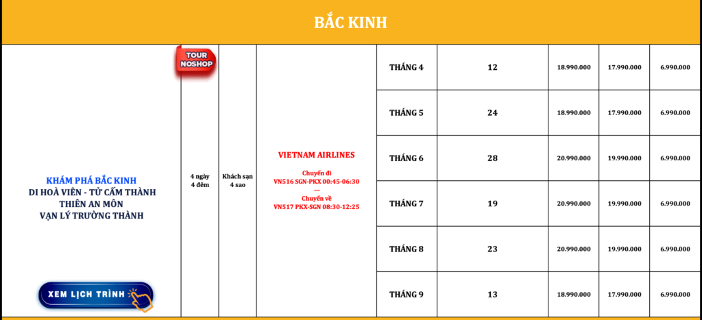 TRUNG QUỐC | KHÁM PHÁ BẮC KINH | DI HOA VIÊN – TỬ CẤM THÀNH – THIÊN AN MÔN – VẠN LÝ TRƯỜNG THÀNH | 4N4Đ | VIETNAM AIRLINES | NOSHOP