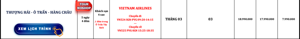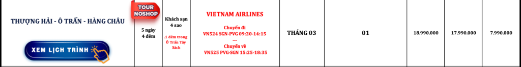 TRUNG QUỐC | THƯỢNG HẢI – Ô TRẤN – HÀNG CHÂU | 5N4Đ | NOSHOP