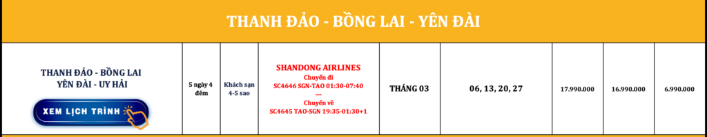 TRUNG QUỐC | THANH ĐẢO – BỒNG LAI – YÊN ĐÀI – UY HẢI | 5N4Đ | SHANDONG AIRLINES