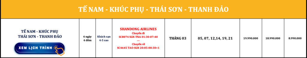 TRUNG QUỐC | TẾ NAM – KHÚC PHỤ – THÁI SƠN – THANH ĐẢO | 6N6Đ | SHANDONG AIRLINES