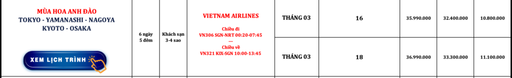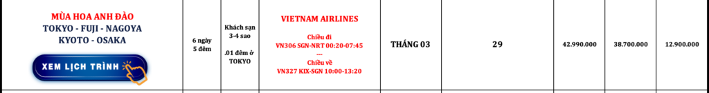 NHẬT BẢN | TOKYO – YAMANASHI – NAGOYA – KYOTO – OSAKA | 6N5Đ | VIETNAM AIRLINES