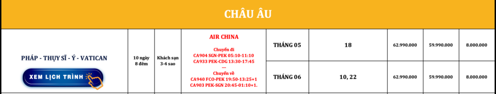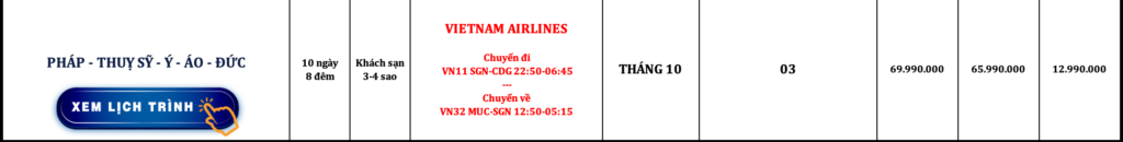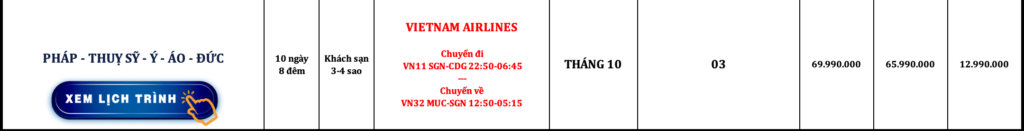CHÂU ÂU | PHÁP – THUỴ SỸ – Ý – ÁO – ĐỨC | 10N8Đ | VIETNAM AIRLINES