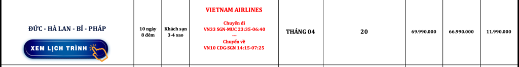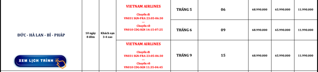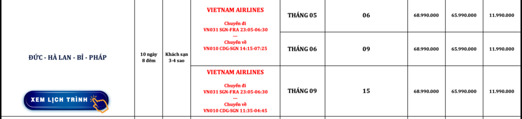 CHÂU ÂU | ĐỨC – HÀ LAN – BỈ – PHÁP | 10N8Đ | VIETNAM AIRLINES