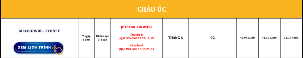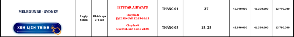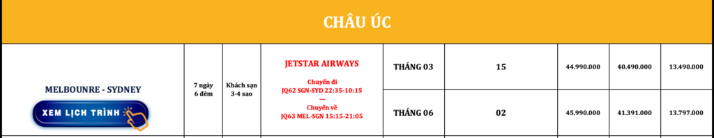 ÚC | SYDNEY – MELBOURNE | 7N6Đ | JETSTAR AIRWAYS