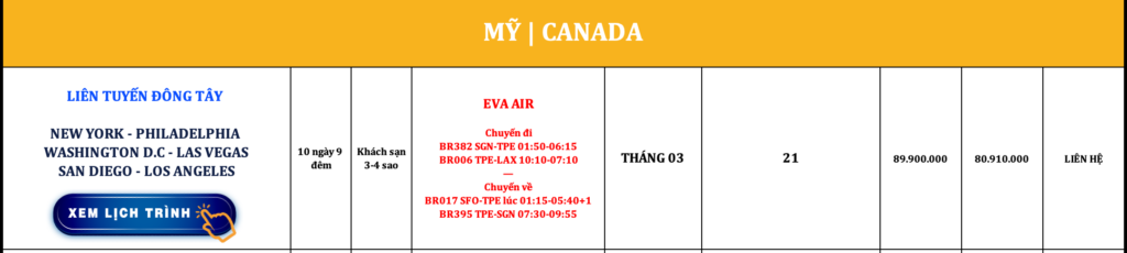 LIÊN TUYẾN ĐÔNG TÂY HOA KỲ | NEW YORK – PHILADELPHIA – WASHINGTON D.C – LAS VEGAS – SAN DIEGO – LOS ANGELES | 10N9Đ | EVA AIR