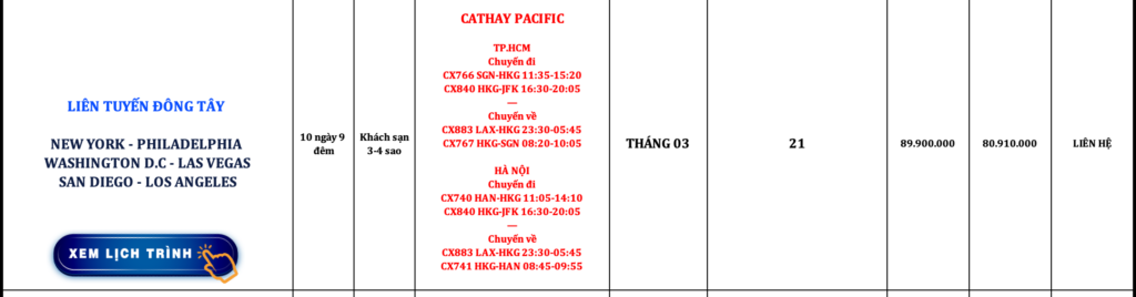 LIÊN TUYẾN ĐÔNG TÂY HOA KỲ | NEW YORK – PHILADELPHIA – WASHINGTON D.C – LAS VEGAS – SAN DIEGO – LOS ANGELES | 10N9Đ | CATHAY PACIFIC