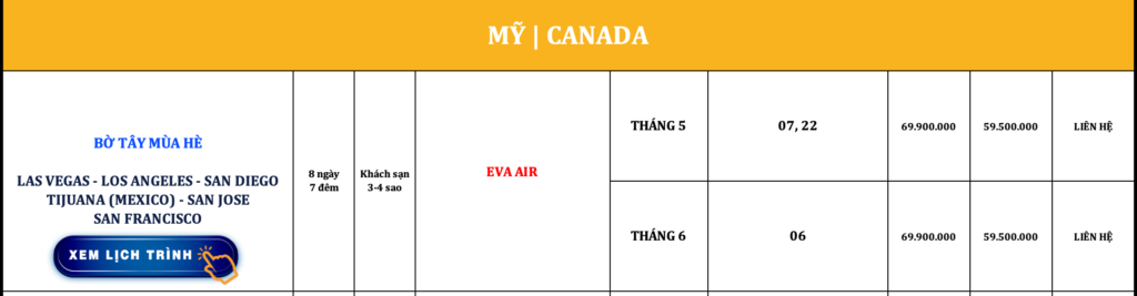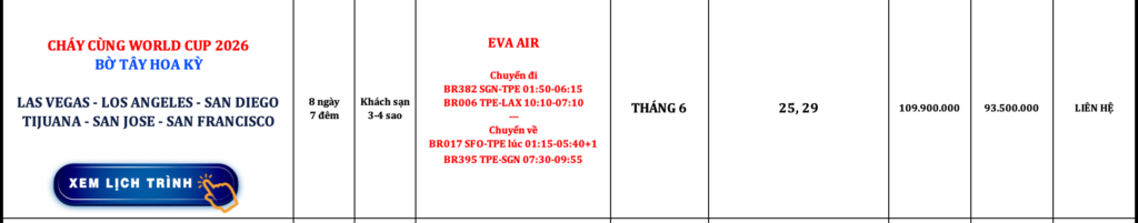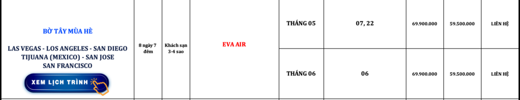 BỜ TÂY HOA KỲ | LAS VEGAS – LOS ANGELES – SAN DIEGO – TIJUANA – SAN JOSE – SAN FRANCISCO | 8N7Đ | EVA AIR