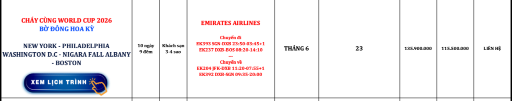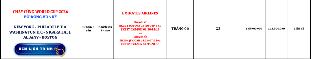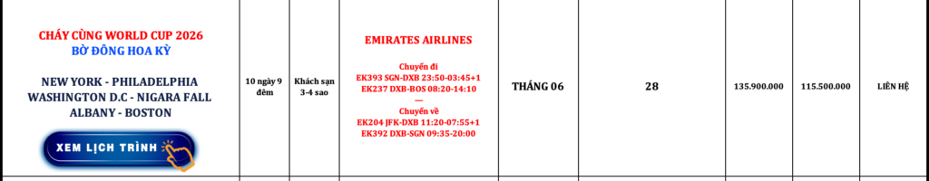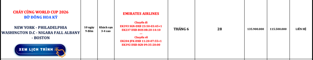 BỜ ĐÔNG HOA KỲ | NEW YORK – PHILADELPHIA – WASHINGTON D.C – NIGARA FALL – ALBANY – BOSTON | 10N9Đ | EMIRATES AIRLINES
