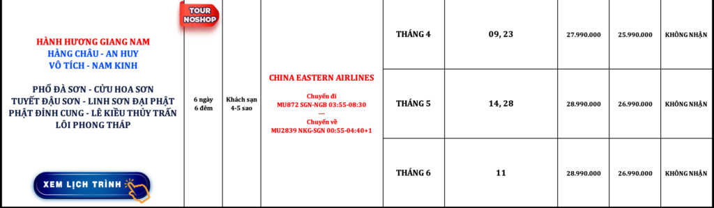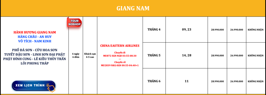 TRUNG QUỐC | HÀNH HƯƠNG GIANG NAM | 6N6Đ | NOSHOP