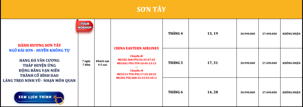 TRUNG QUỐC | HÀNH HƯƠNG SƠN TÂY | 7N7Đ | NOSHOP