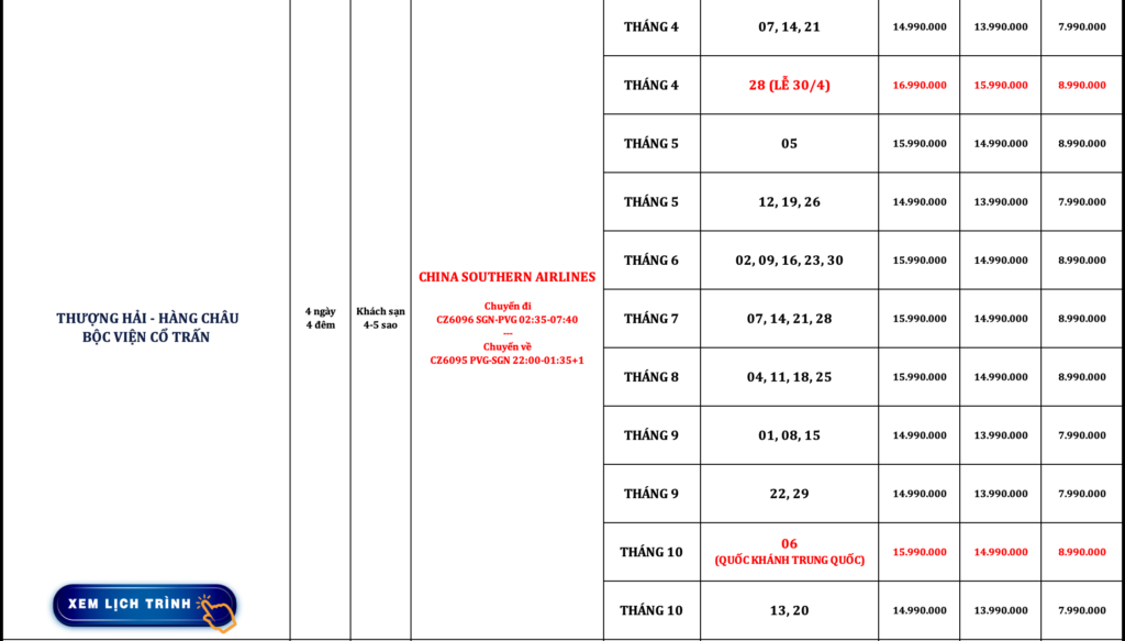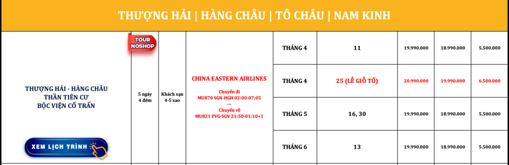 TRUNG QUỐC | THƯỢNG HẢI – HÀNG CHÂU – THẦN TIÊN CƯ – BỘC VIỆN CỔ TRẤN | 5N4Đ | NOSHOP
