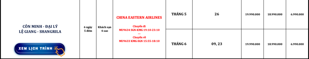 TRUNG QUỐC | CÔN MINH – ĐẠI LÝ – LỆ GIANG – SHANGRILA | 6N5Đ | NOSHOP