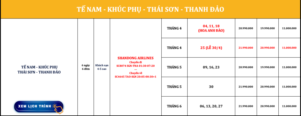 TRUNG QUỐC | TẾ NAM – KHÚC PHỤ – THÁI SƠN – THANH ĐẢO | 6N6Đ | NO SHOPPING