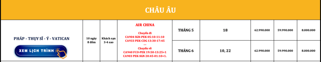 CHÂU ÂU | PHÁP – THỤY SĨ – Ý – VATICAN | 10N8Đ