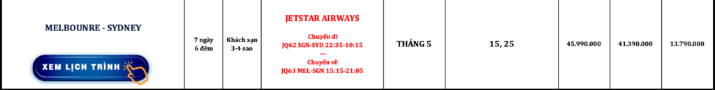 ÚC | MELBOURNE – SYDNEY | 7N6Đ | JETSTAR AIRWAYS