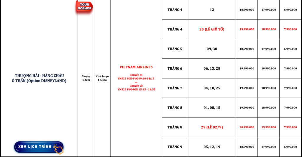 TRUNG QUỐC | THƯỢNG HẢI – HÀNG CHÂU – Ô TRẤN (Option DISNEYLAND THƯỢNG HẢI) | 5N4Đ | VIETNAM AIRLINES