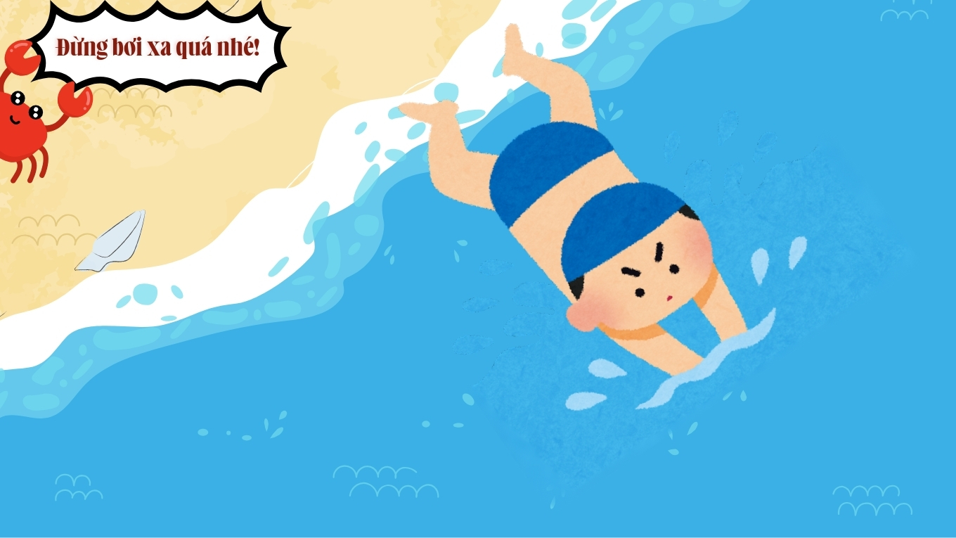Bơi xa bờ có thể khiến bạn đối mặt với sóng lớn, dòng chảy mạnh và các nguy cơ khác mà không thể lường trước. Không bơi xa quá 15m hoặc ở khu vực sâu quá 5m. Luôn quan sát kỹ phía sau và không bơi quá 15 phút trong lần đầu tiên xuống nước.