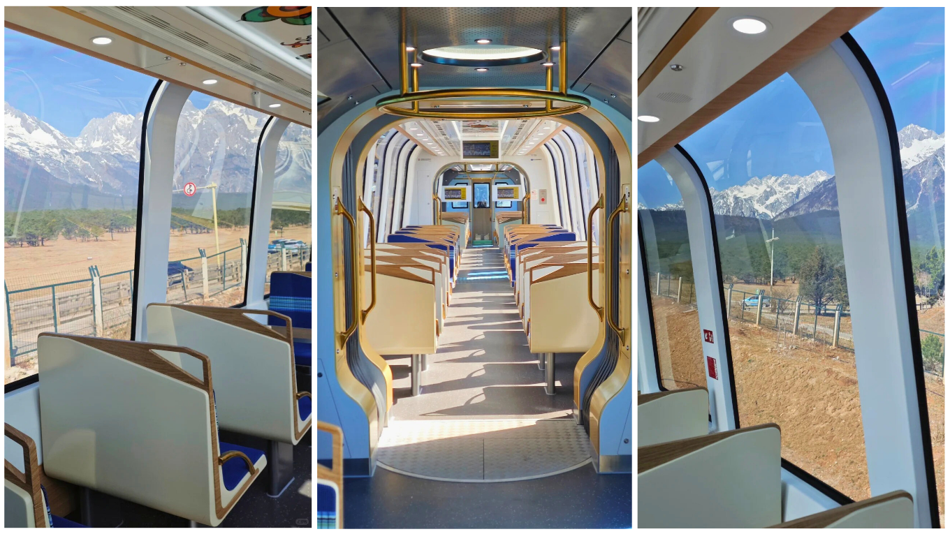 Thay vì di chuyển bằng xe du lịch rồi đổi sang xe bus công cộng của khu du lịch, tàu điện xuất phát từ Trạm du khách, đi qua các điểm như Bạch Sa Trấn, Ngọc Thủy Trại, và kết thúc tại Trạm Ngọc Long – nơi du khách bắt đầu hành trình cáp treo. Tàu được thiết kế cửa kính toàn cảnh, mang đến trải nghiệm thị giác ấn tượng giúp du khách tận hưởng trọn vẹn khung cảnh Tây Nam hùng vĩ.