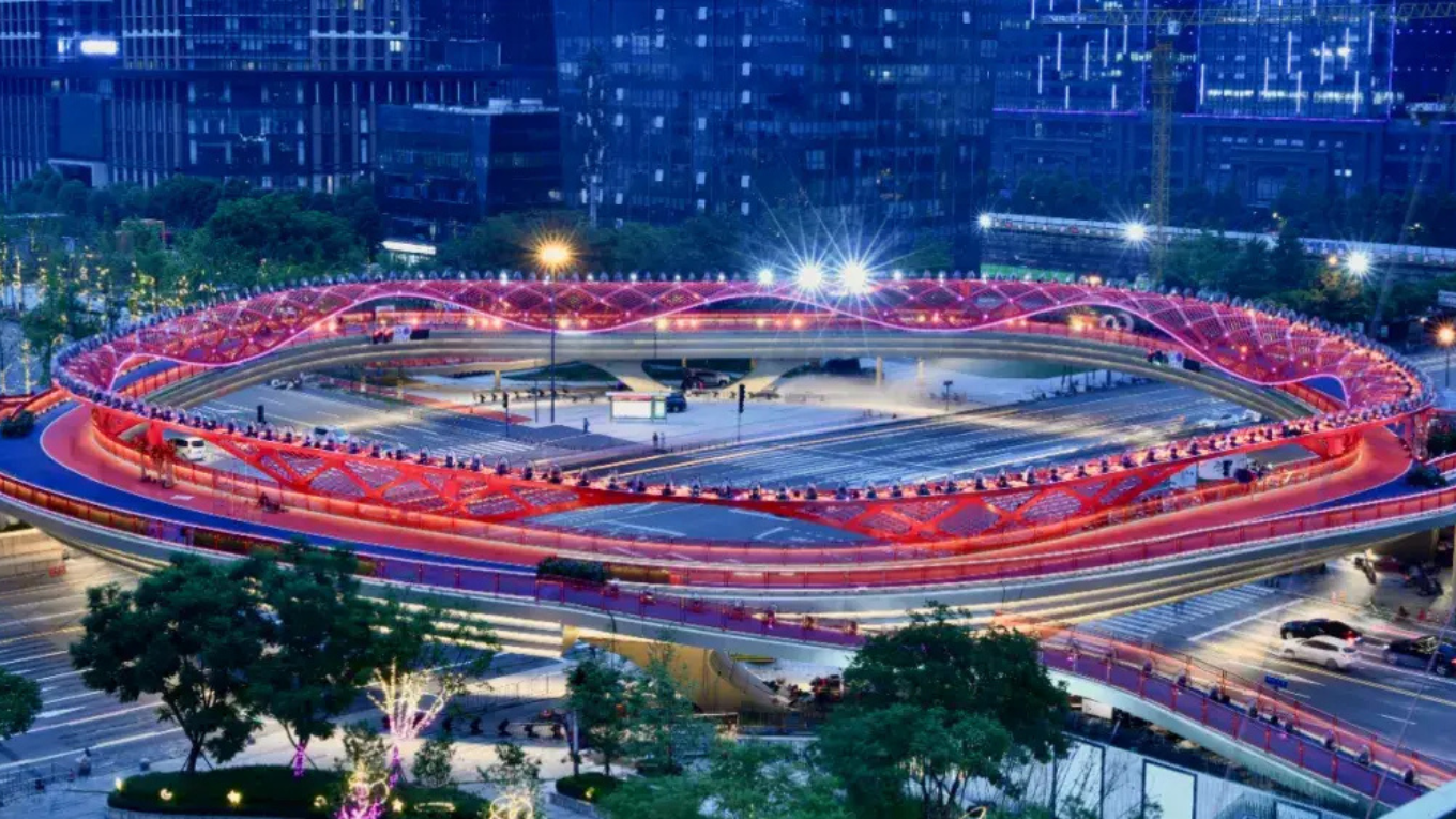- Check-in Tháp Đôi Trung tâm Tài chính Thành Đô – Cầu đi bộ Vòng tròn lửa Jiaozi