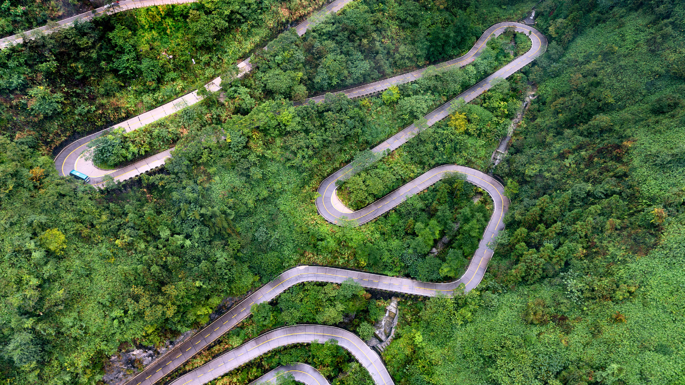 Tuyến đường mang tên “Đường lên trời” với 99 khúc cua quanh co hiểm trở được thiết kế đặc biệt để chinh phục độ cao gần 1.200m so với mực nước biển. Mỗi khúc cua đều mang một ý nghĩa tâm linh, tượng trưng cho con đường tu luyện để đến gần với cõi thiên. Hành trình này không dành cho người yếu tim, nhưng phần thưởng là cảnh sắc kỳ vĩ bốn bề núi non, rừng cây, và mây trời.