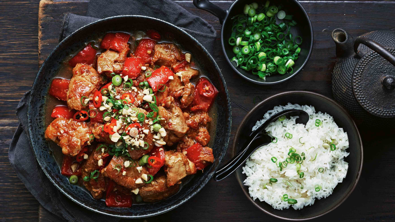 Thịt gà đậm đà, mềm ngọt kết hợp cùng với nước sốt cay nồng, thơm béo đặc trưng do được nấu cùng đậu phộng và các nguyên liệu khác tạo nên một món ăn hấp dẫn với nhiều màu sắc bắt mắt.
